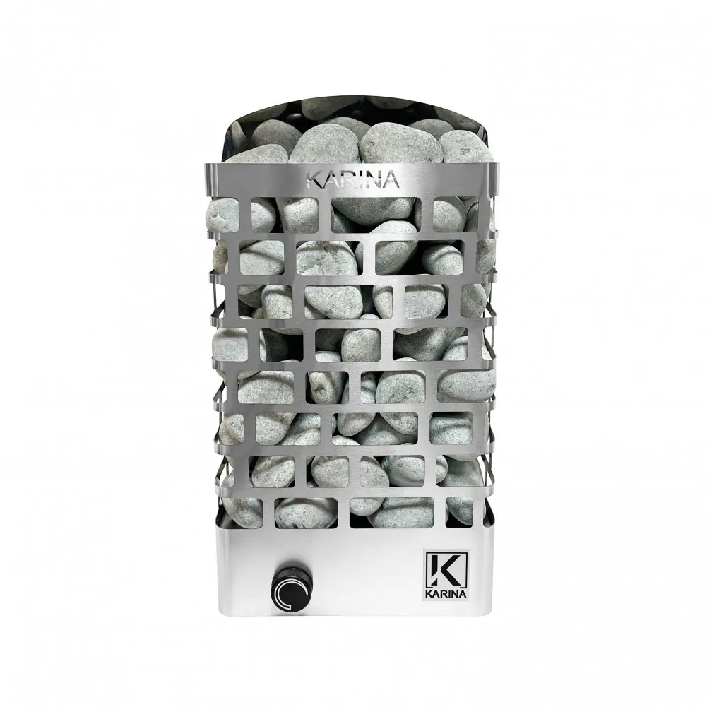 Электрокаменка служит для прогрева воздуха в не больших саунах. На камни в этой печи можно лить воду, делая пар более влажным и мягким. Монтаж на стену позволяет сделать помещение более просторным. Температура в парной регулируется с помощью встроенного пульта управления.