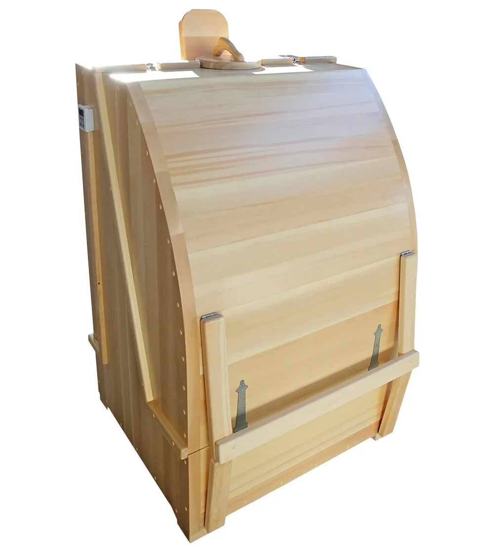 Кедровая бочка (фитобочка) круглая «Классическая» Круглая фитобочка из кедра - это мини парная, которую можно использовать не только в спа-салонах, но и дома. Такая модель наиболее компактна и мобильна. Толщина стенок составляет 25 мм. Фитобочка оборудована откидными створками, дверцей и отверстием для головы. Во время парения человек сидит внутри кедровой бочки, а голова находится снаружи. Благодаря этому исключается возможность перегрева. Подлокотники из кедра, встроенные ручки на створках и двери делают эксплуатацию более удобной. Парение в фитобочке благотворно влияет на организм в целом: повышается иммунитет, выводятся шлаки и токсины, улучшается работа органов тела и состояние кожи.