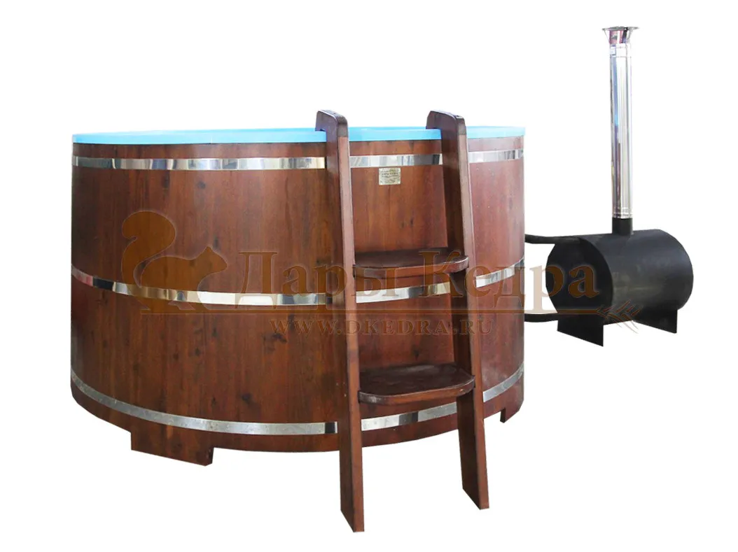 Идеальный выбор для тех, кто ценит безопасность и пространство. Печь расположена снаружи, что освобождает место внутри купели и исключает контакт с горячими элементами. Это также облегчает закладку дров и чистку печи. Вода нагревается через теплообменник, обеспечивая равномерный и быстрый прогрев.