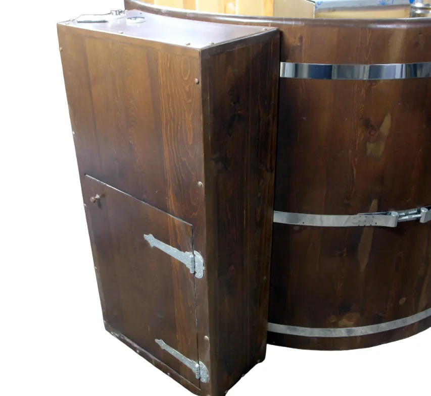 Это треугольная емкость для воды из кедра. Она предназначена для отдыха и охлаждения тела после банных процедур. Купель устанавливается в угол помещения, что идеально для не больших пространств. Так же подходит для уличного использования. Угловая купель оснащена лавочками, приставной и внутренней лестницей из кедра. За счет стяжных болтов обручи из нержавеющей стали плотно прилегают к кедровой купели. Это позволяет равномерно распределять нагрузку воды и сохранить форму изделия в период эксплуатации. При правильном уходе угловая купель для бани не рассыхается и не подвергается гниению.