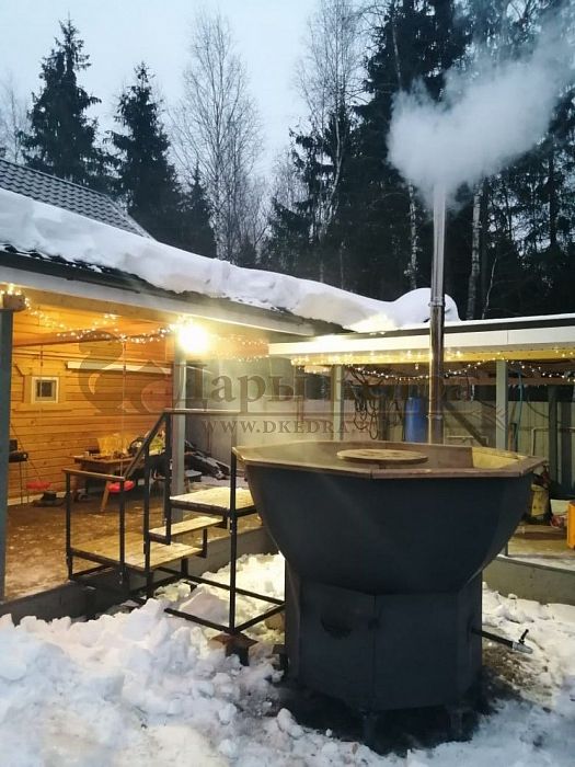 Банный чан из нержавеющей стали Ø-2000 на подставке с ветрозащитой и печью СТ3